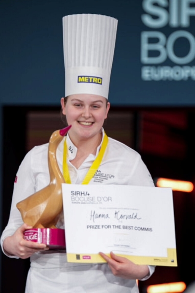 Hanna Korvald var en sentral del av Team Norway da Norge tok sølv i Bocuse d’Or Europe. Som commis jobbet hun tett med Christian André Pettersen gjennom konkurransen, og ble også kåret til beste commis.