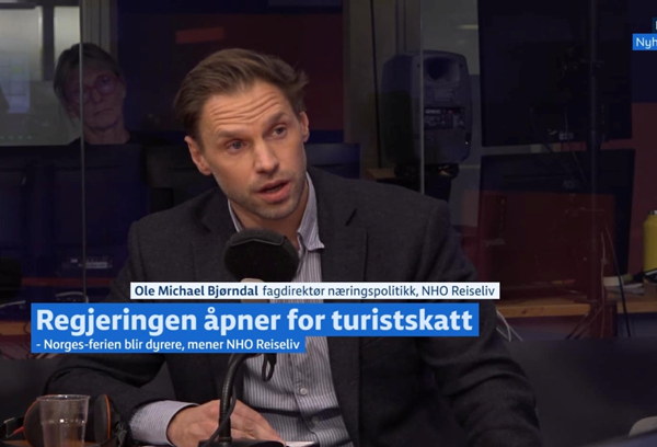 20.11.2024 Sterke reaksjoner på regjeringens turistskatt-forslag Reiselivsnæringen reagerer sterkt på regjeringens forslag om turistskatt. – Et råttent kinderegg, sier Ole Michael Bjørndal.