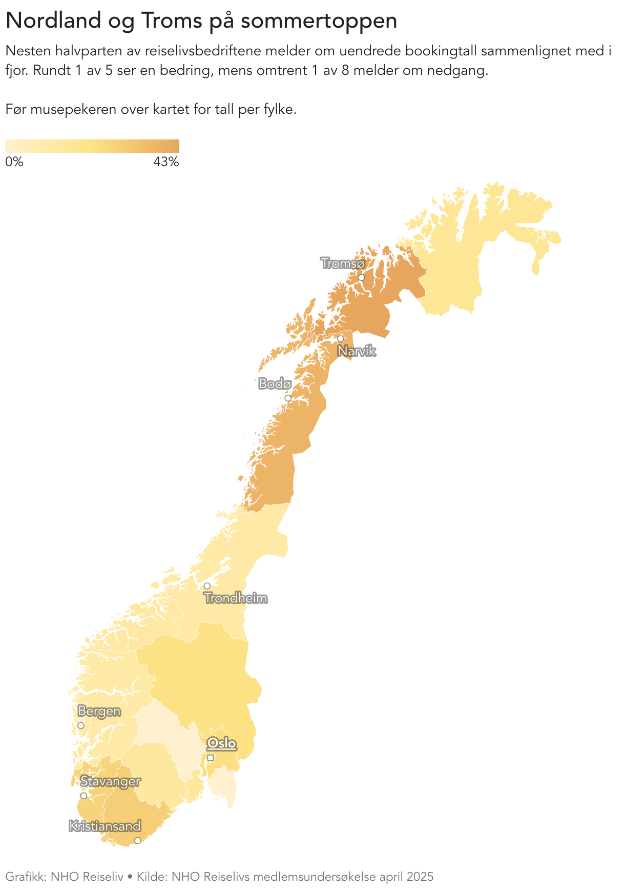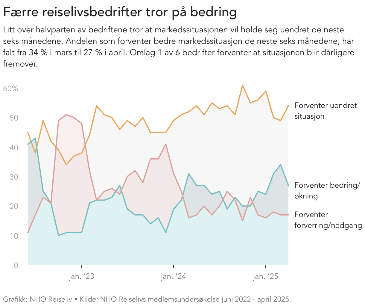 NHO Reiseliv følger situasjonen til norske reiselivsbedrifter tett gjennom regelmessige medlemsundersøkelser og bransjemøter.