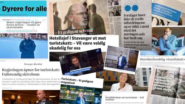 I løpet av tirsdagen var det mer enn 160 nyhetssaker om turistskatt-forslaget. NHO Reiseliv er sitert i over halvparten av disse.