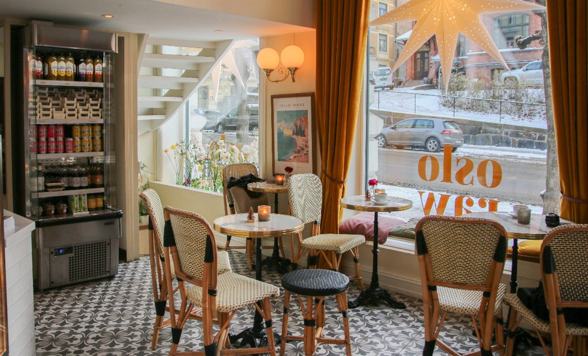 Hun tar en pause og tenker seg om. Kaffekvernen i Frogner-kafeen går for fullt mens gjestene skravler. Det begynner å nærme seg lunsjtider og hektisk stemning.