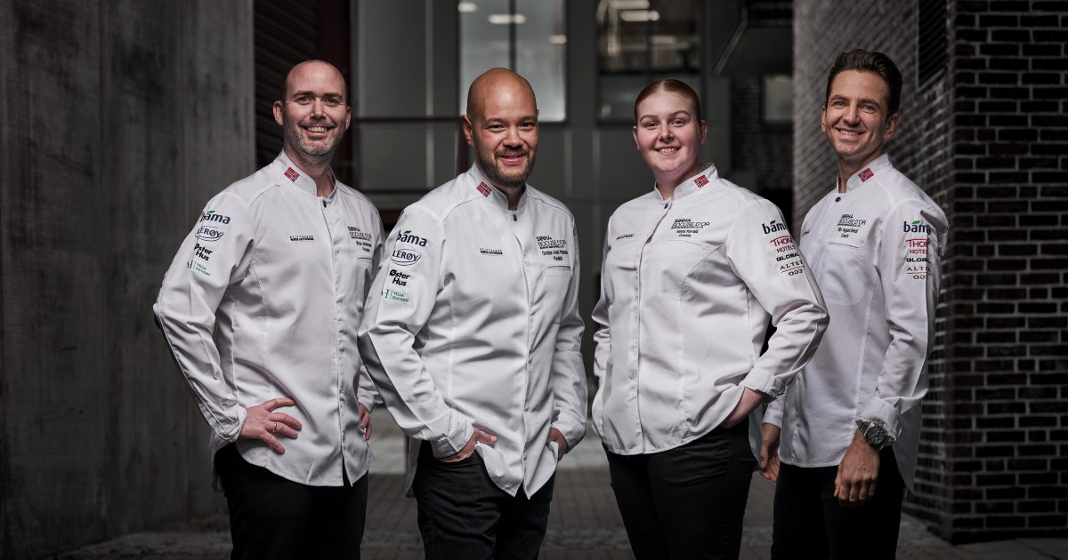 Christian André Pettersen leder det norske laget når Bocuse d’Or Europe arrangeres 15. og 16. mars 2026. Med seg har han commis Hanna Korvald, coach Filip August Bendi og president Ørjan Johannessen.